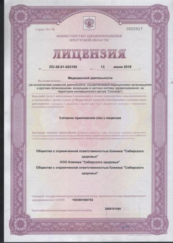 Клиника Сибирского Здоровья оказывает медицинскую помощь на основании лицензий на осуществление медицинской деятельности.